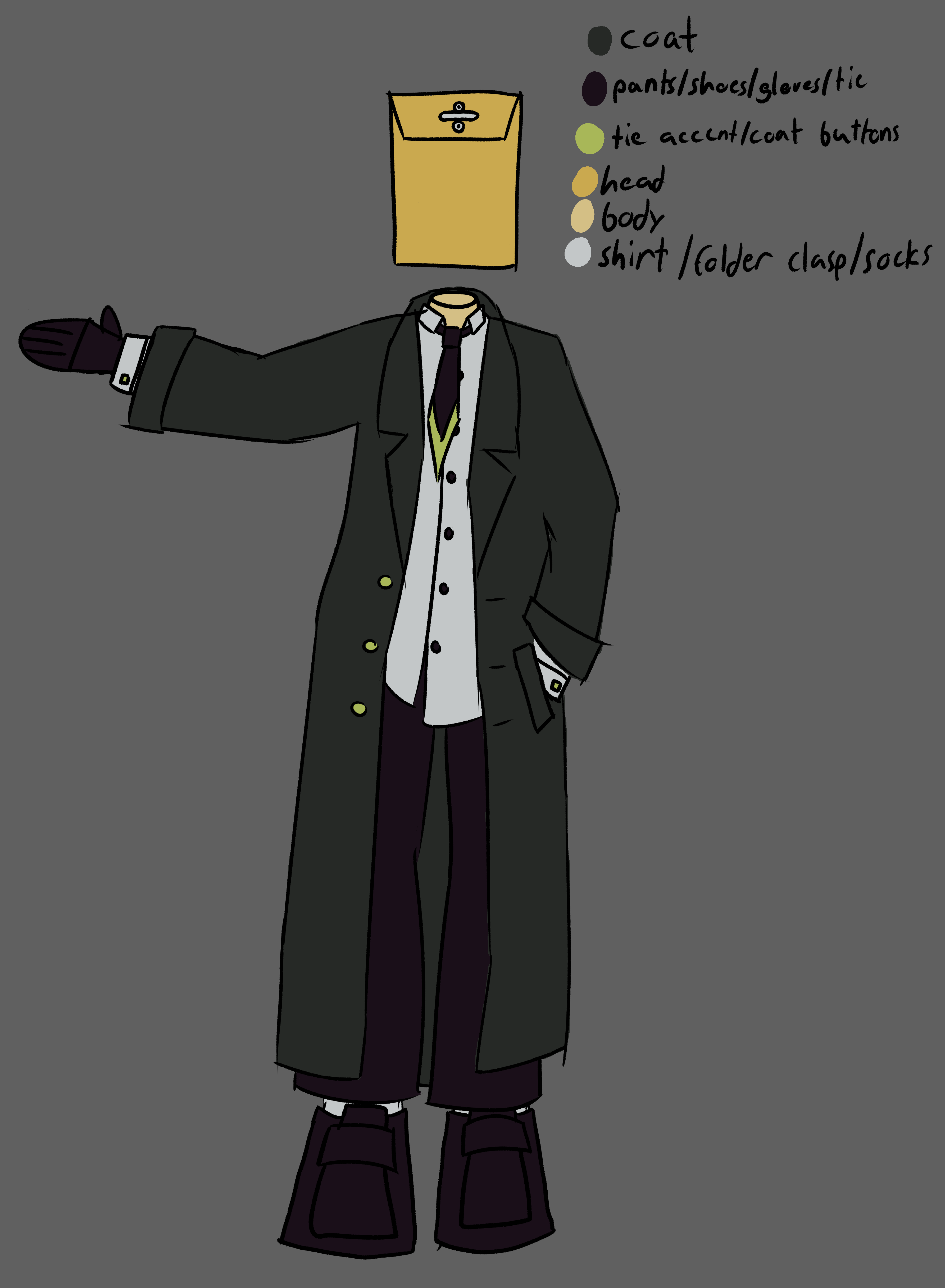 Two is a pretty normal guy, aside from the whole being decapitated thing. He was killed by decapitation and then later revived as a vampire, and he's currently investigating his own murder. He has a conspiracy board about it. Since he was, well, decapitated, he doesn't really have any memory of his life before dying. He has frequent nightmares where he gets decapitated, but the details are never the same. He can't really control his current head, it just uses sympathetic magic to react to his emotions and such. He can't really talk through the head, so he has a spell infused into the gem on his jabot that lets him make his thoughts audible. The head also gives him normal senses and such. His vampirism and revival is basically a very complicated curse put on him. The same magic that revived him also locks his astral self into his body, so he can't astral project and such, making it a bit harder for him to do magic since he can't interact with manaweave as directly. He's managed to modify the manaweave of his vampirism so that he doesn't burn in the sun, but he does still drink blood. The particulars of how that works aren't important.