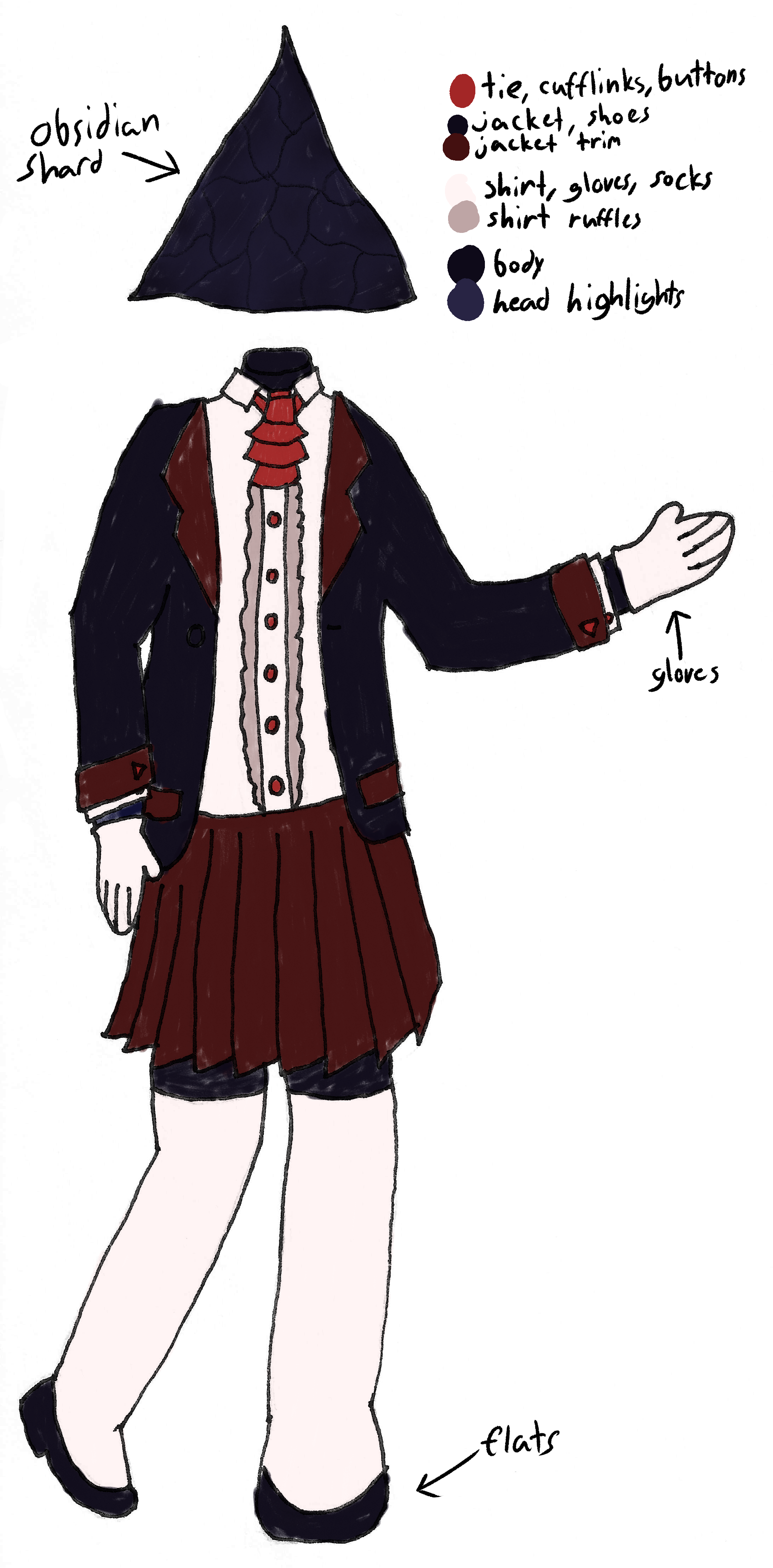 It tries to be kind in its daily life, but it often feels like it's lying when it's being nice. It easily crumbles under pressure. When it's "stargazing" (what it tells people when it goes out to kill), or in related situations, it can be quite cold and calculating, brutally efficient in its violence. Its hobbies include reading, board games, and actual stargazing. It enjoys stories about sympathetic monsters or killers. It speaks with a noticeable American accent, and sometimes drops G's from the end of words.
